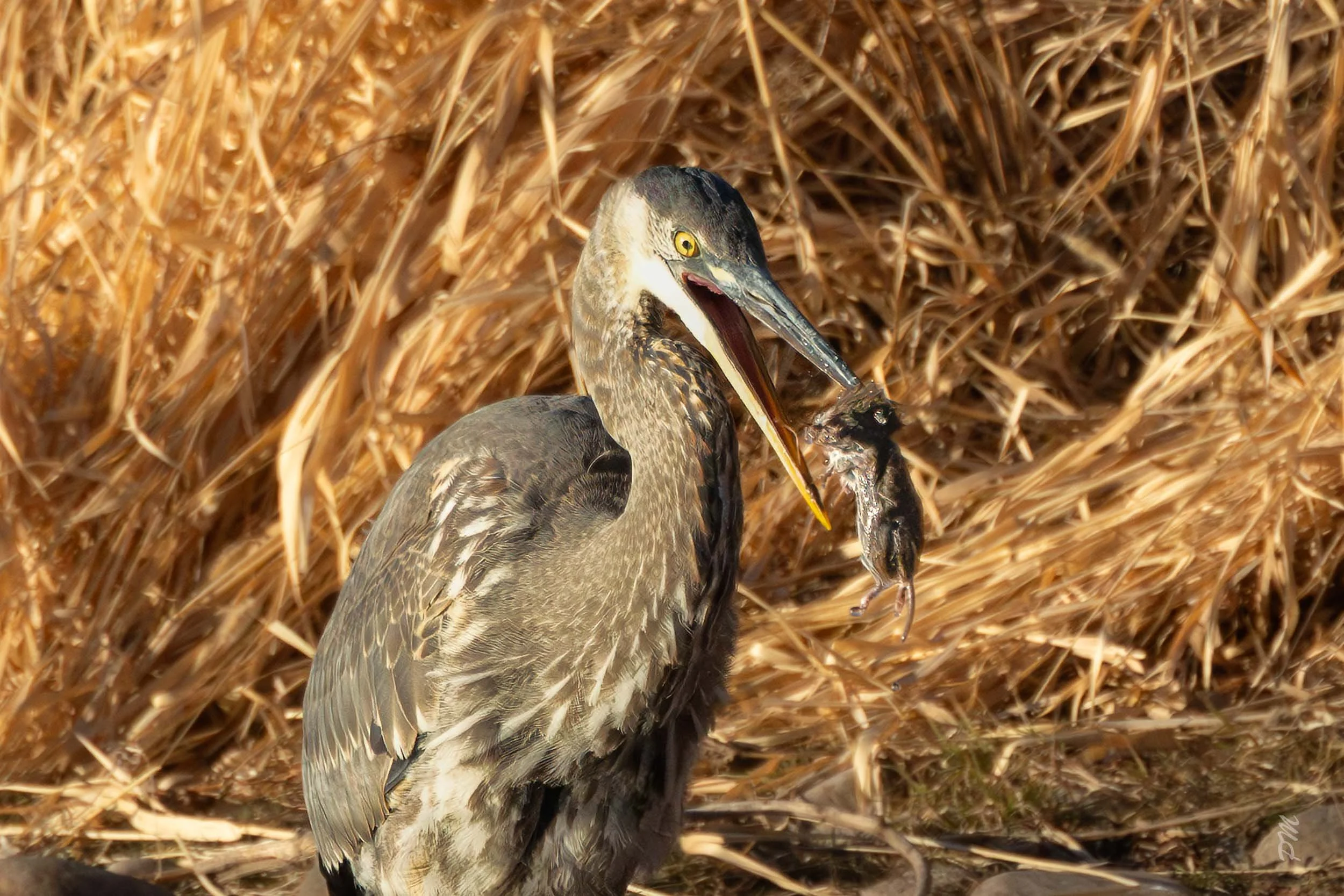 Right (Above on mobile device) - Great Blue Heron caught a rodent for its dinner
