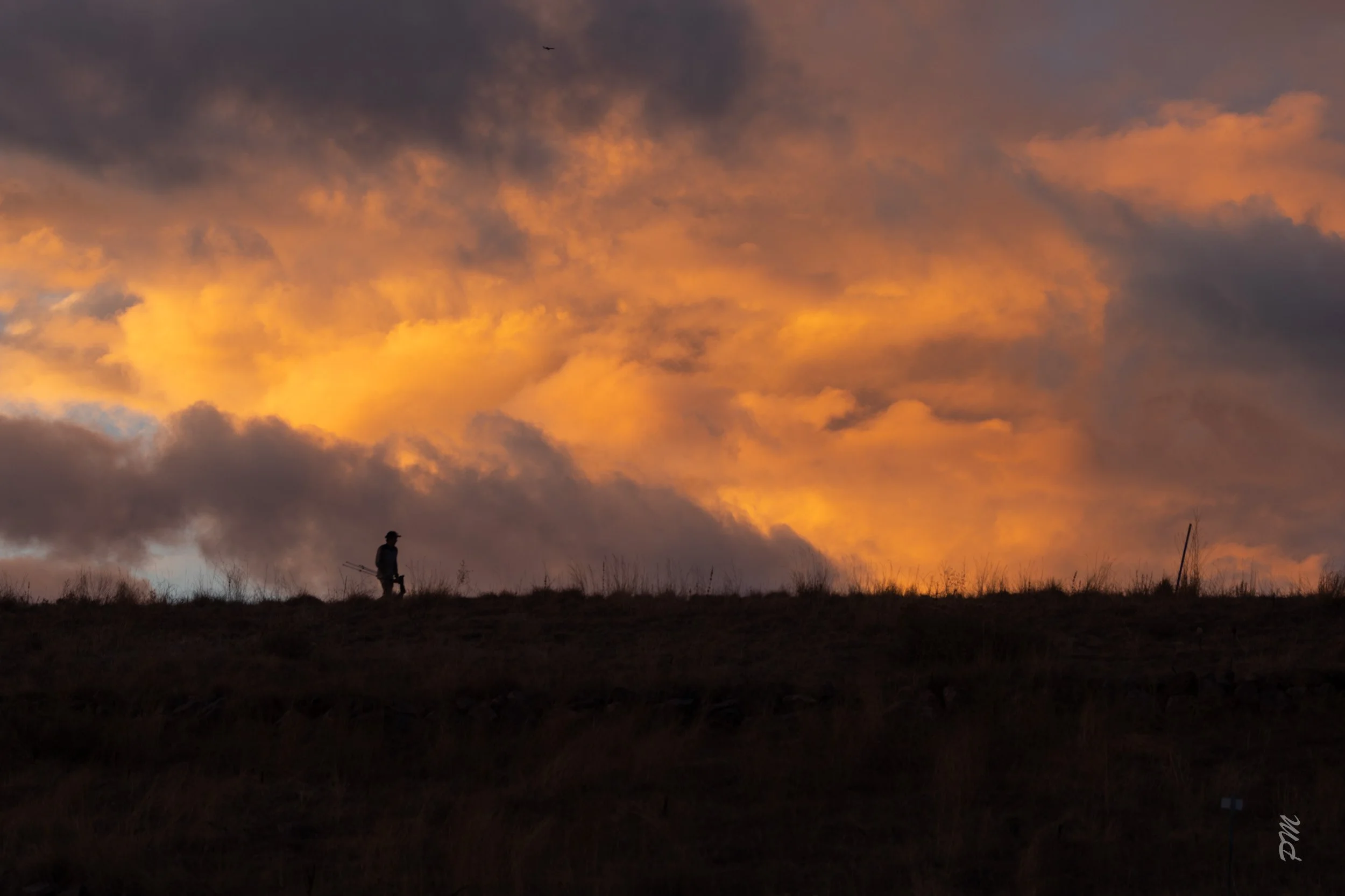 Right (Above on mobile device) - Obviously not a bird but a spectacular sunset while I was heading to my car. The person in the photo must have been a birder because he is carrying a scope on the trail around the reservoir
