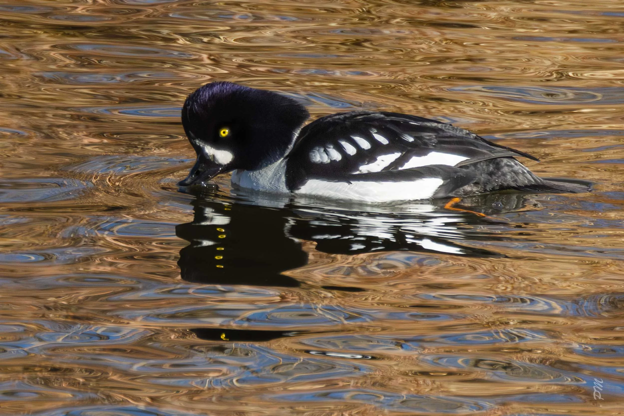 Right (Above on mobile device) - I was excited to see my first ever barrow’s Goldeneye in the South Platte River checking out its reflection in the water. How many reflected eyes can you find?