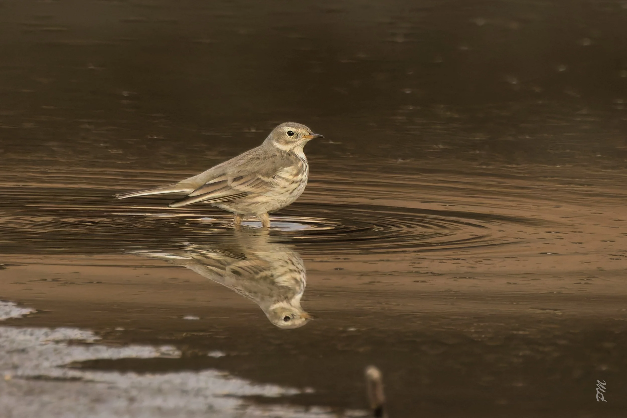 Right (Above on mobile device) - American Pipit checks out its reflection in water