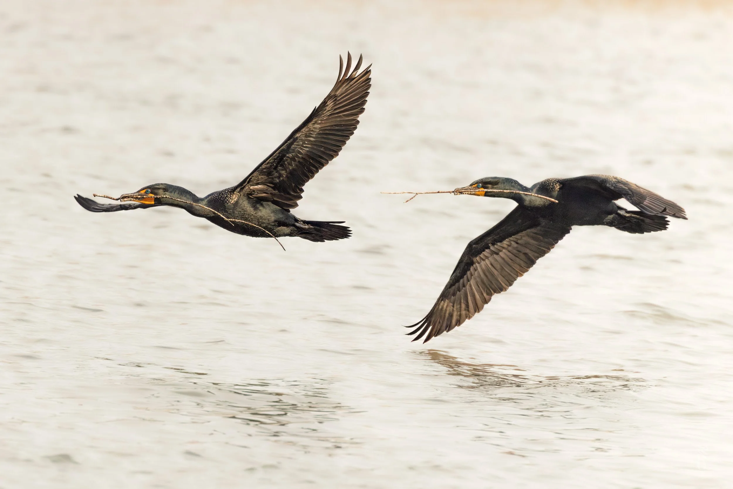 And for those birds that are returnees here to breed, they start that process with nests. And to build a nest, you need sticks like the ones below are collecting.