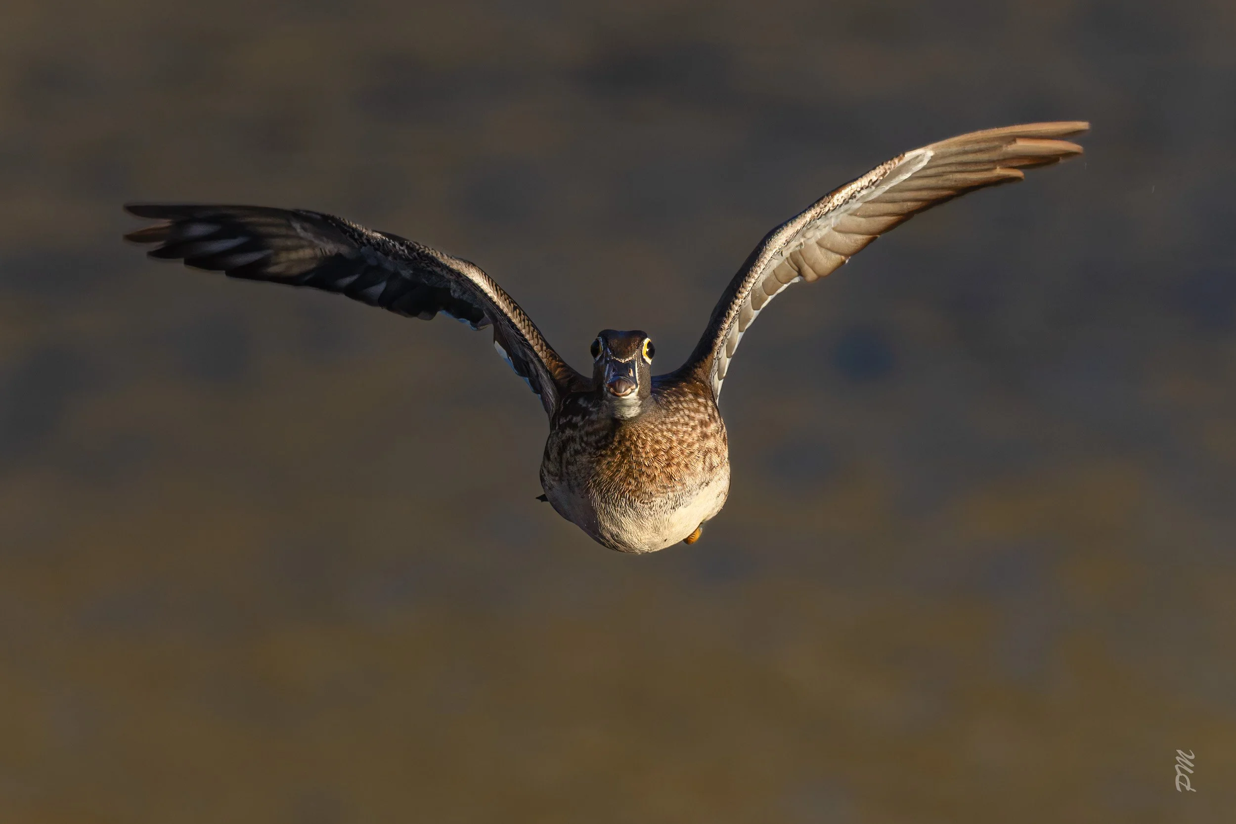 Above - A female Wood Duck in flight heading right at me!