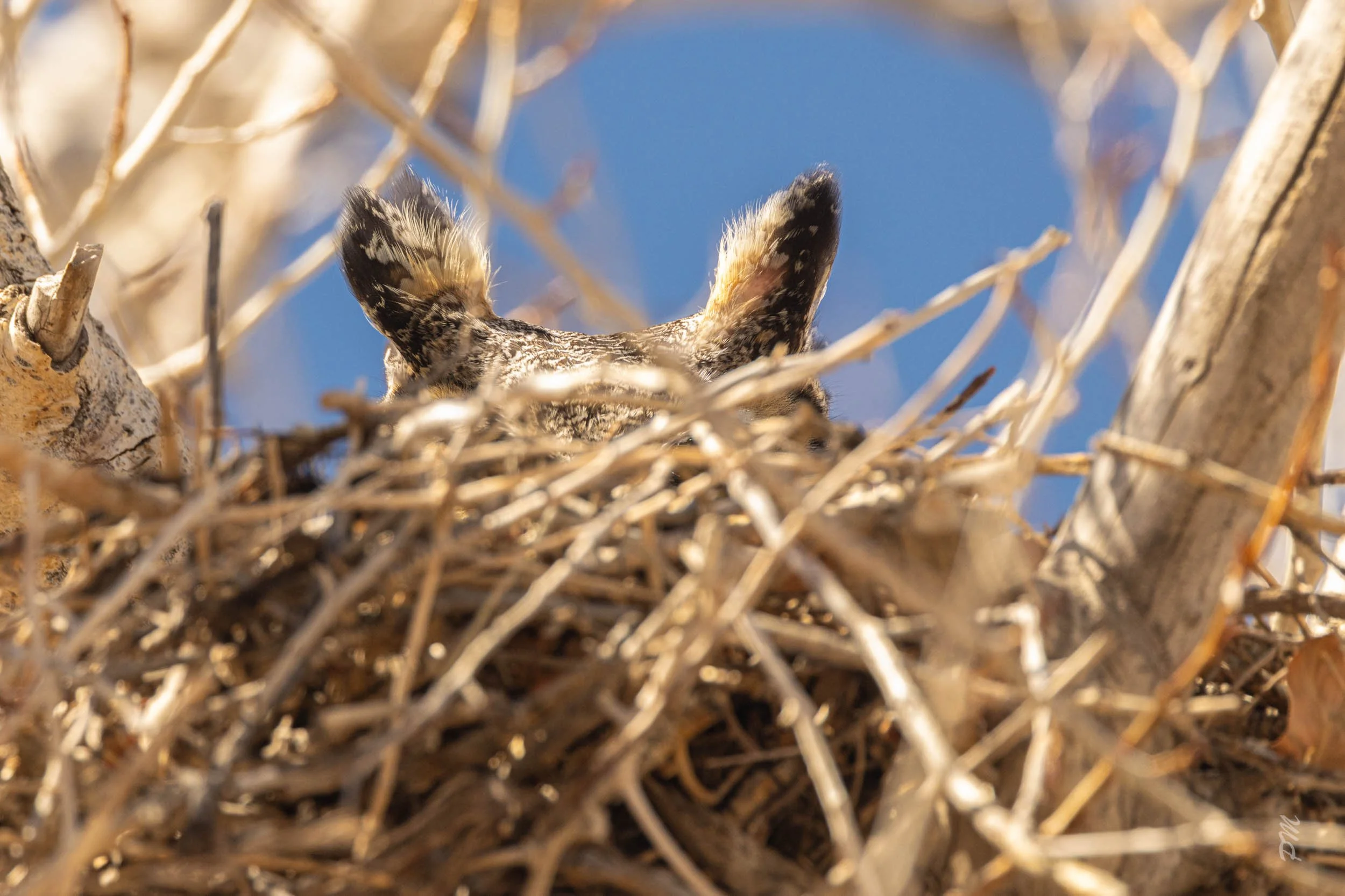 Above - A Great Horned Owl lays low in her nest